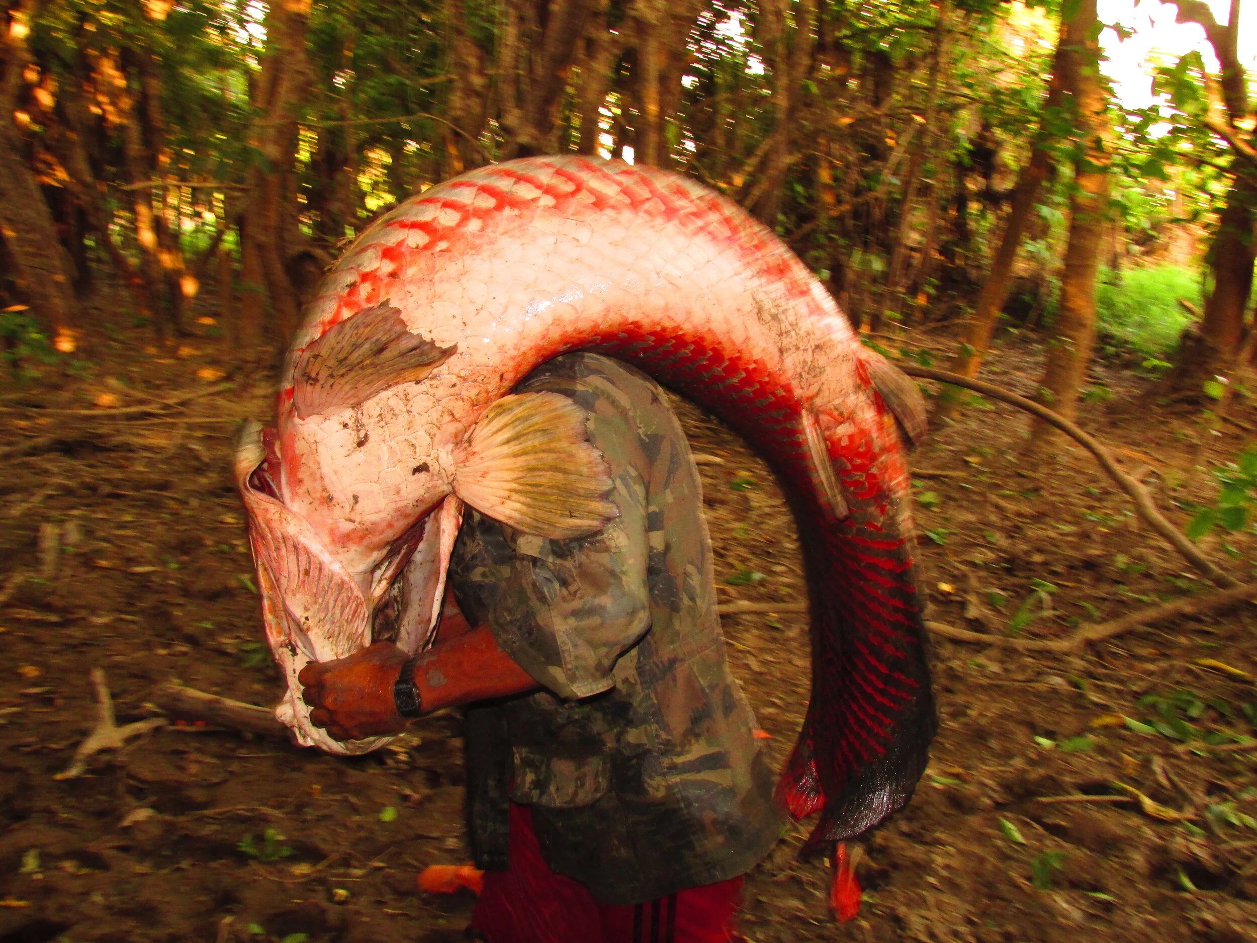 “No próximo 31 de maio a pesca do pirarucu está legalmente liberada. Isso é importante porque é um recurso de grande importância econômica para as comunidades daqui da região. Mas também é necessário ressaltar que baseados em estudos recentes, as populações de pirarucu estão deplecionadas devido a práticas insustentáveis de pesca. Então mais uma vez reforçamos o desenvolvimento do manejo para recuperação de estoques já superexplorados” - explicou a bióloga da Sapopema, Poliane Batista.