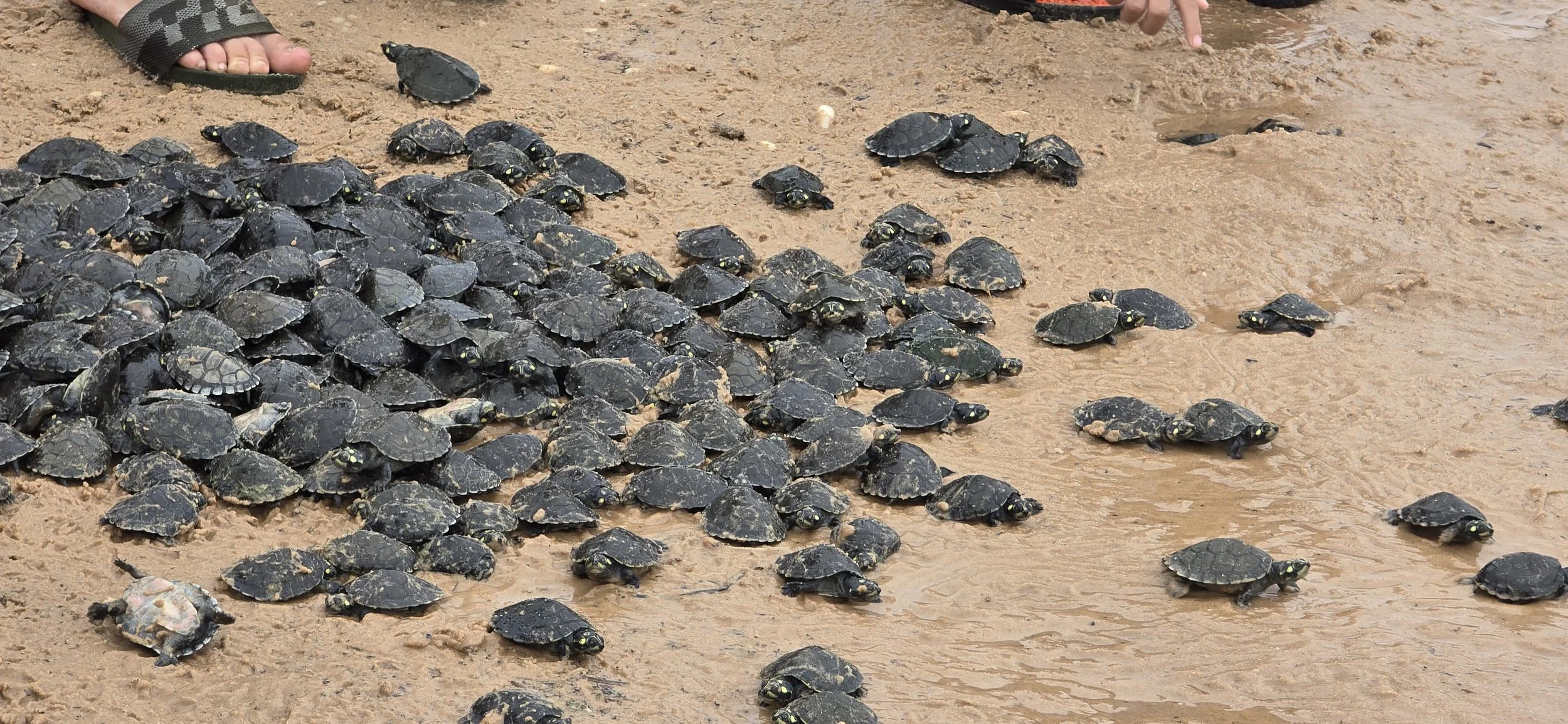 Dois mil filhotes de tartarugas são soltos em cerimônia na comunidade Coroca, Rio Arapiuns