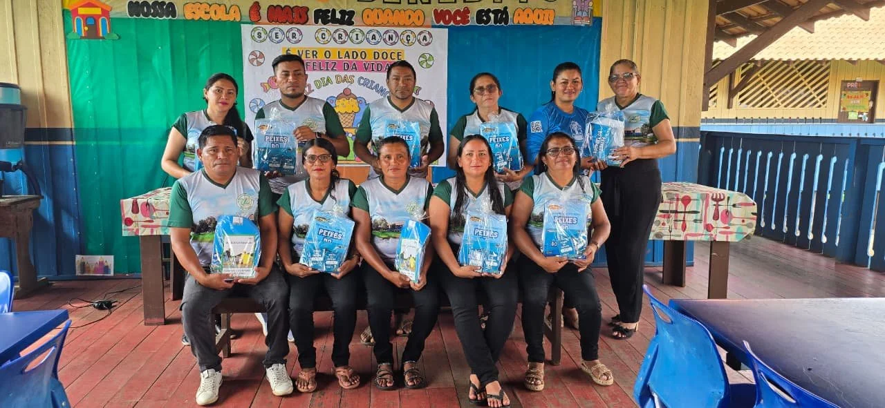 Na Escola Municipal de Educação Infantil e Ensino Fundamental São Benedito, a gestora Edilene Ferreira de Souza destacou o entusiasmo da equipe docente com o material. “É um projeto muito rico, com ferramentas pedagógicas que auxiliam bastante nossos professores, porque o conteúdo é de fácil acesso para as crianças e de acordo com a realidade delas”, afirmou. Ela ressaltou que o material chega em um momento oportuno. “A gente está planejando um projeto voltado para o manejo do pirarucu. Esses materiais vieram em boa hora, porque vamos trabalhar em sala e depois levar as crianças para ver na prática durante a semana da pesca.”