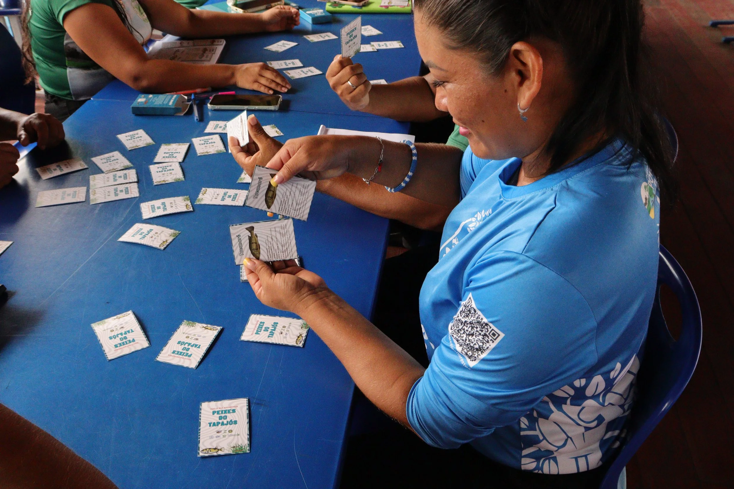 A escola atende dez professores e turmas do ensino infantil ao fundamental, com forte vínculo com o manejo comunitário do pirarucu. A diretora observou que o uso de conteúdos regionais ajuda a despertar maior interesse dos estudantes. “Os materiais refletem a vida deles. Quando se fala da pesca, eles sabem responder porque é o cotidiano deles.”