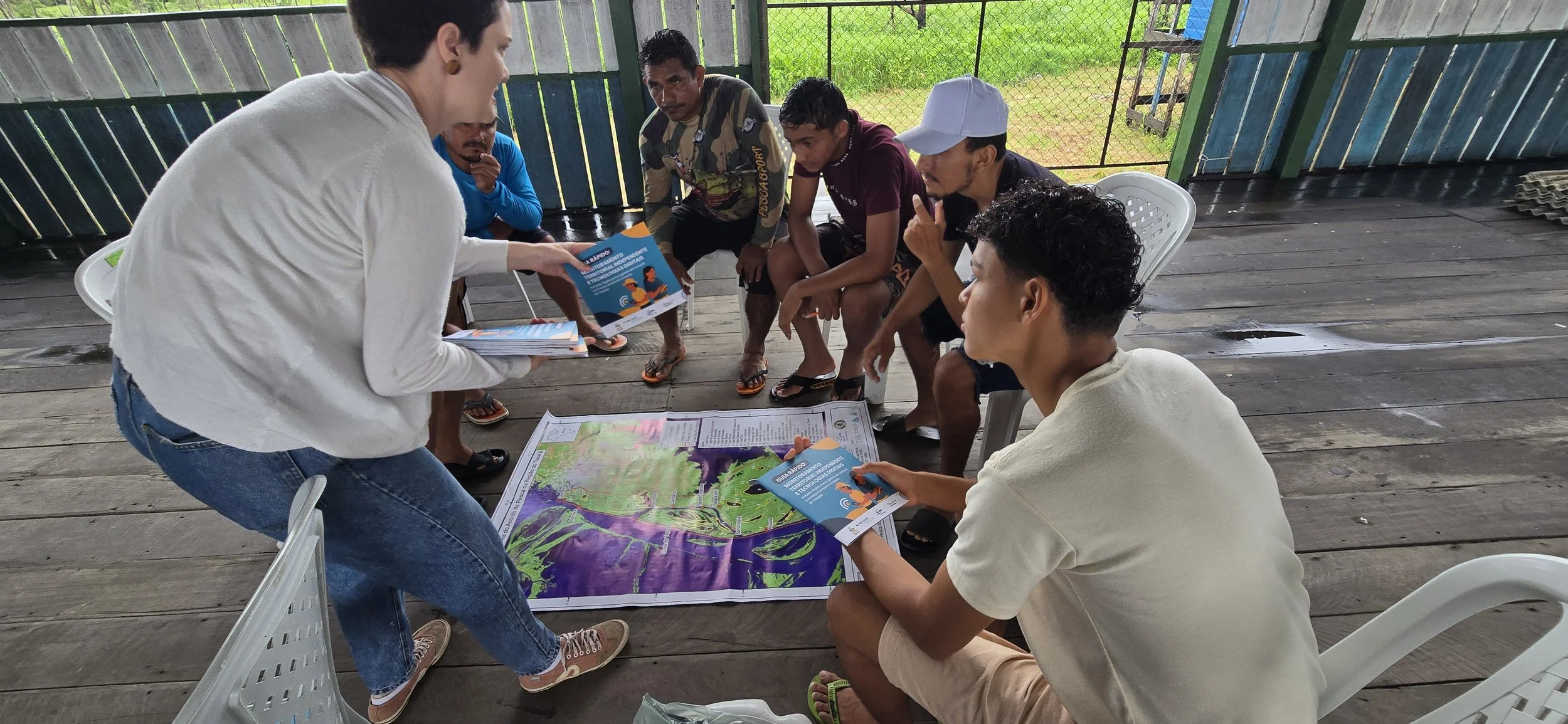 A atividade também incluiu formações sobre uso da internet segura, operação de drones, GPS e aplicativos de celular voltados ao monitoramento territorial. “Jovens, mulheres e pessoas que atuam frente a frente com esse monitoramento estão sendo treinados para utilizar essas tecnologias digitais, conseguir coordenadas geográficas, realizar denúncias mais qualificadas e vigiar seus lagos com mais segurança”, destaca.